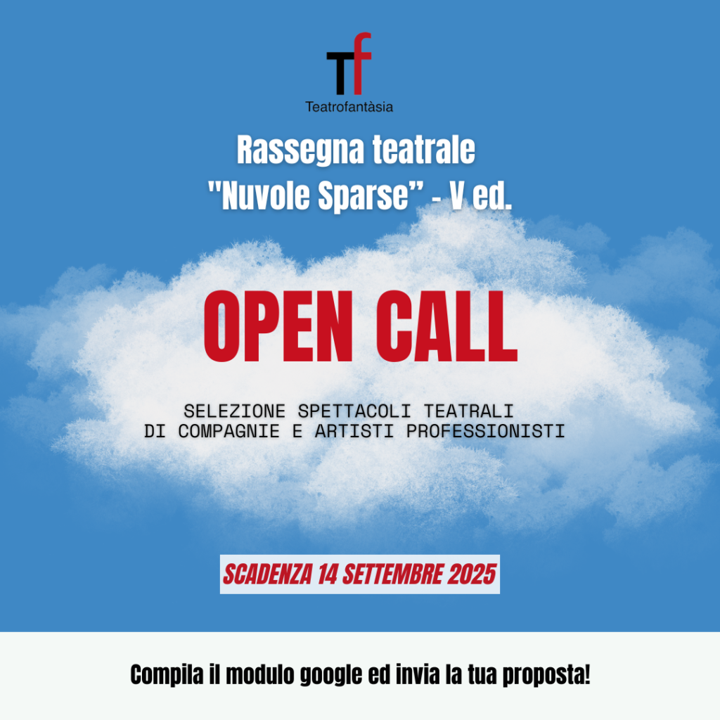 La Direzione Artistica del Teatro Fantàsia seleziona proposte di spettacolo per la rassegna teatrale “Nuvole sparse – V edizione”. Il